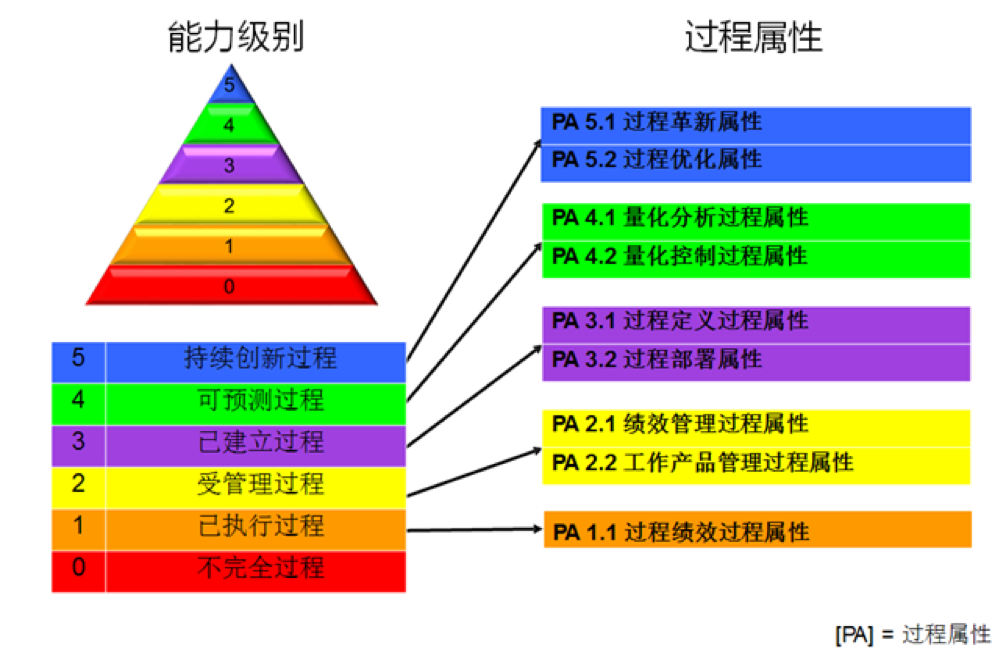 公司實(shí)施的每個過程均在0級至5級的某個級別中。如果公司需要達(dá)到某個能力級別,則實(shí)施范圍內(nèi)的每個過程均需要達(dá)到該級別。