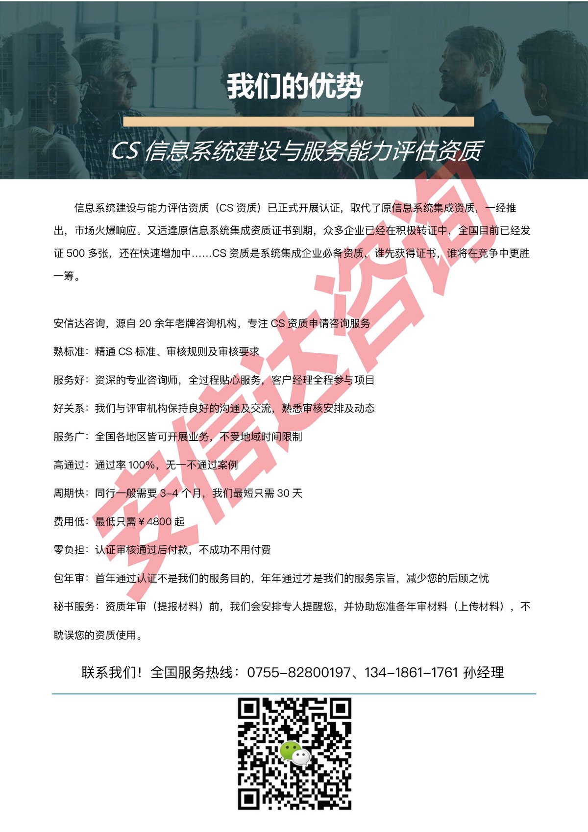 6、評(píng)估機(jī)構(gòu)推薦為CS1級(jí)(初始級(jí))、CS2級(jí)(基本級(jí))評(píng)估結(jié)論的申請(qǐng)企業(yè),報(bào)評(píng)估工作部備案審查通過后,得出最終評(píng)估結(jié)果;初次申請(qǐng)級(jí)別不得高于CS2級(jí)(基本級(jí))。證書有效期內(nèi),達(dá)到一定的年限和能力要求,可以逐步進(jìn)行升級(jí),不可跨級(jí)別申請(qǐng);