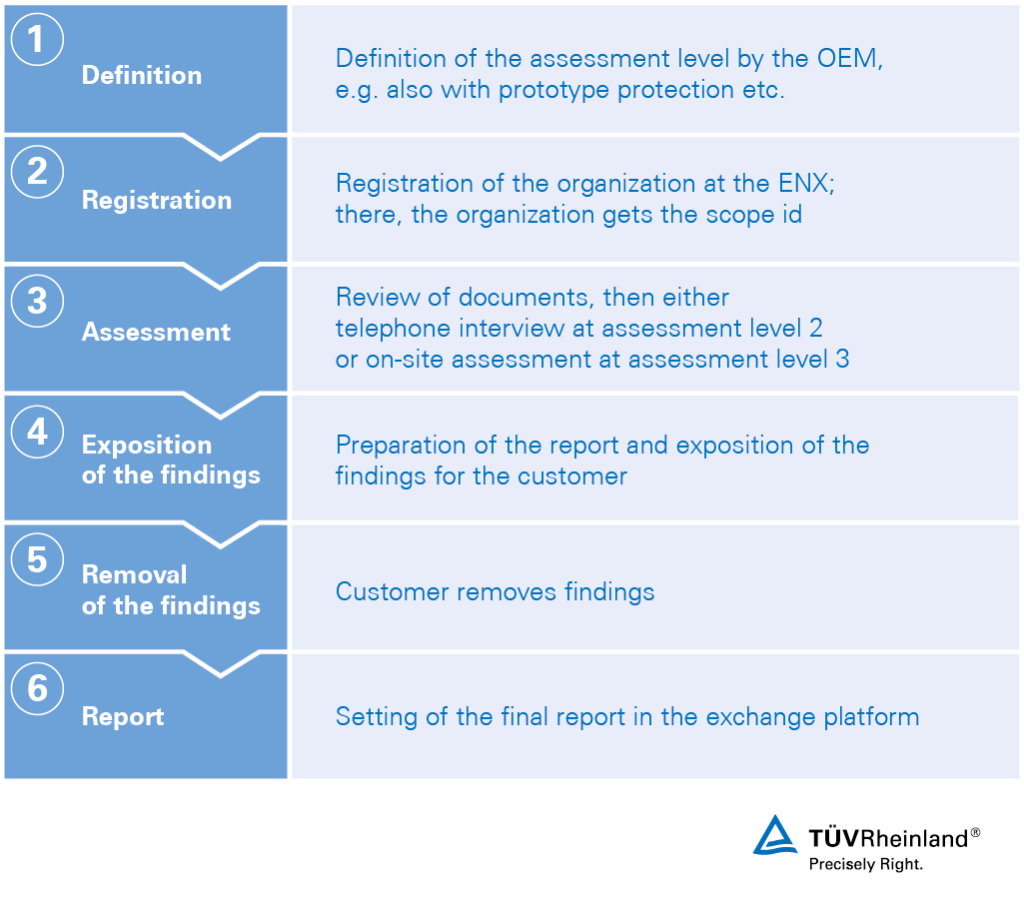 VDA于2017年聯(lián)合ENX推出新的”可信信息安全評估交換Trusted Information Security Assessment Exchange (TISAX)”機(jī)制,此機(jī)制可以實(shí)現(xiàn)汽車行業(yè)信息安全評估的相互認(rèn)可,并提供通用的評估和交換機(jī)制。